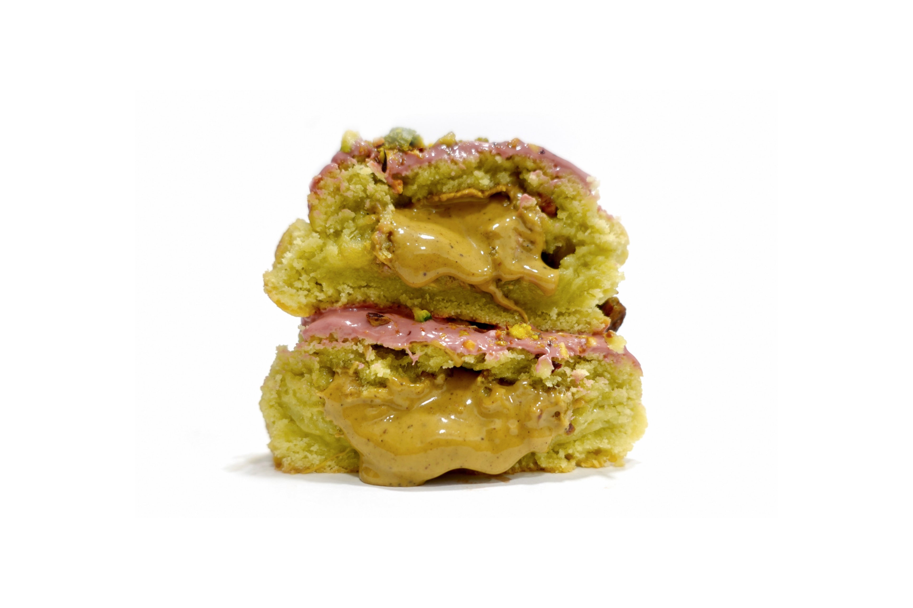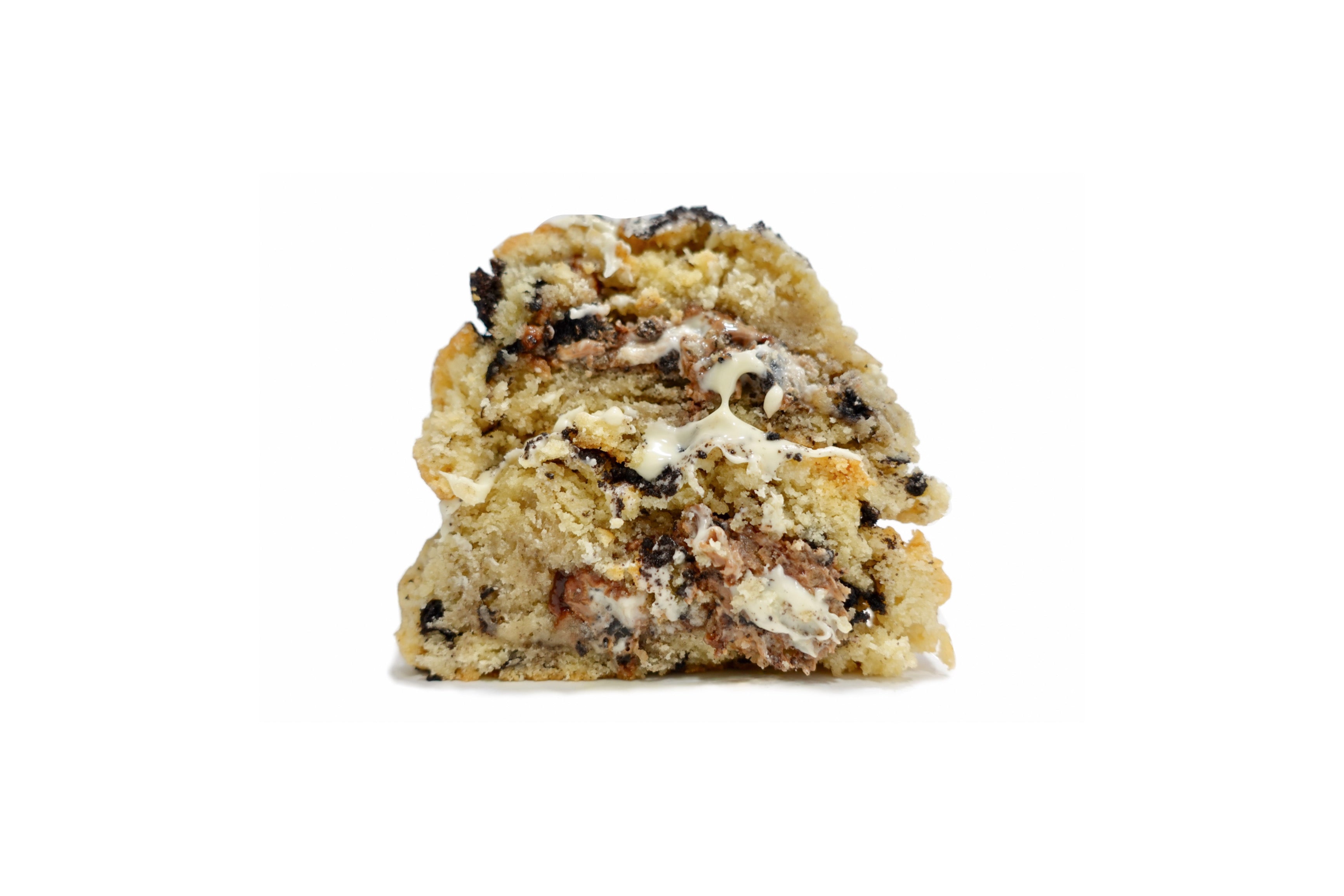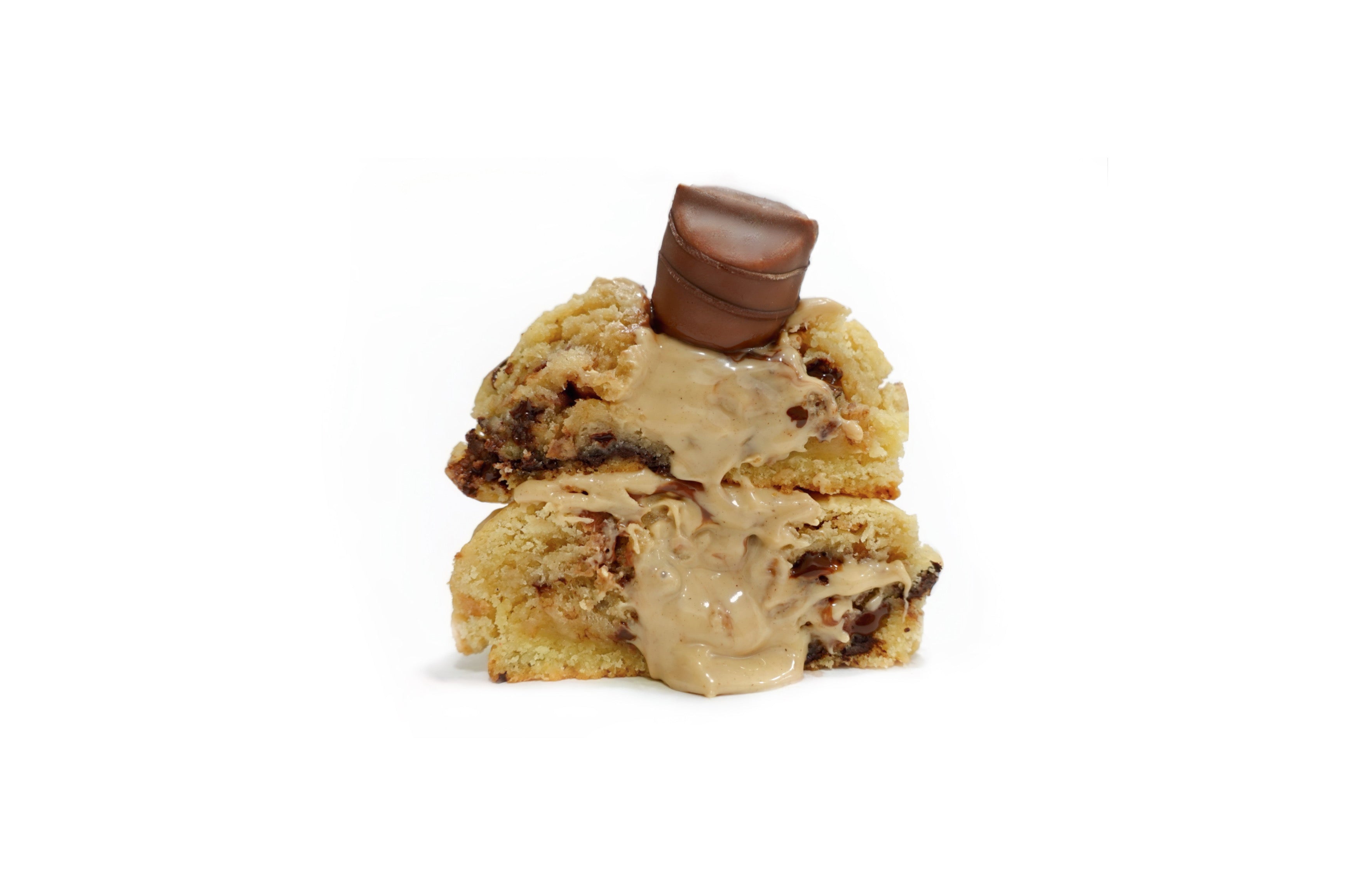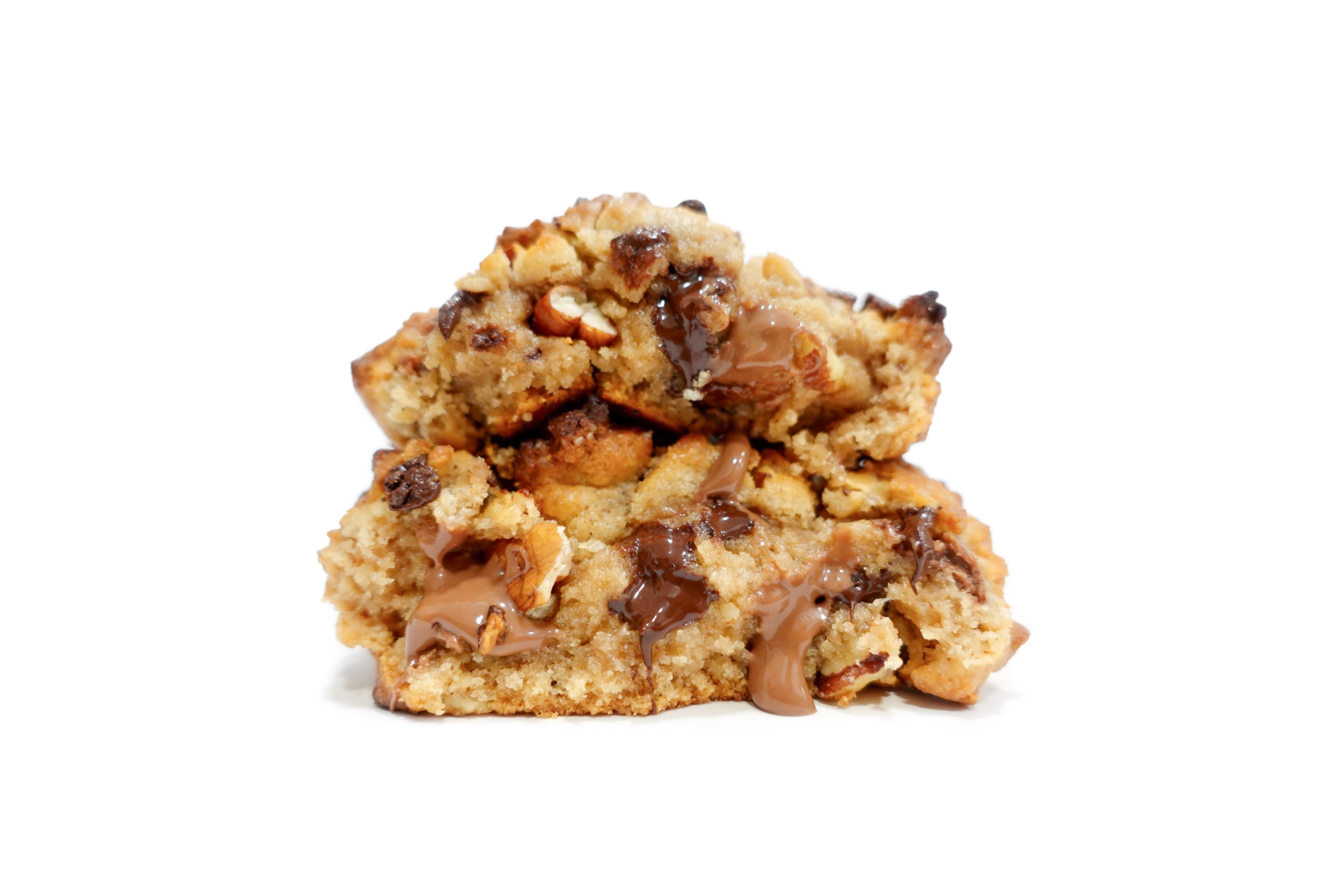 Ce cookie est garni puis décoré d'un filet de chocolat au lait, de poudre de noisette et est généreusement fourré au Nutella.